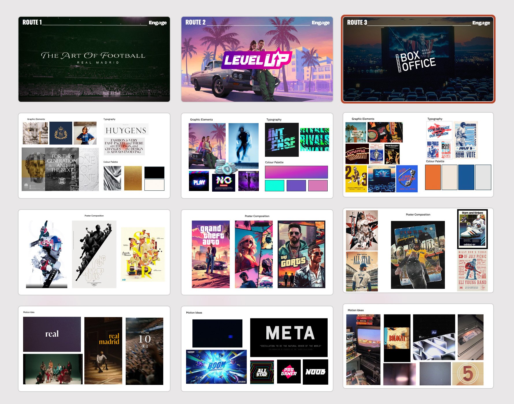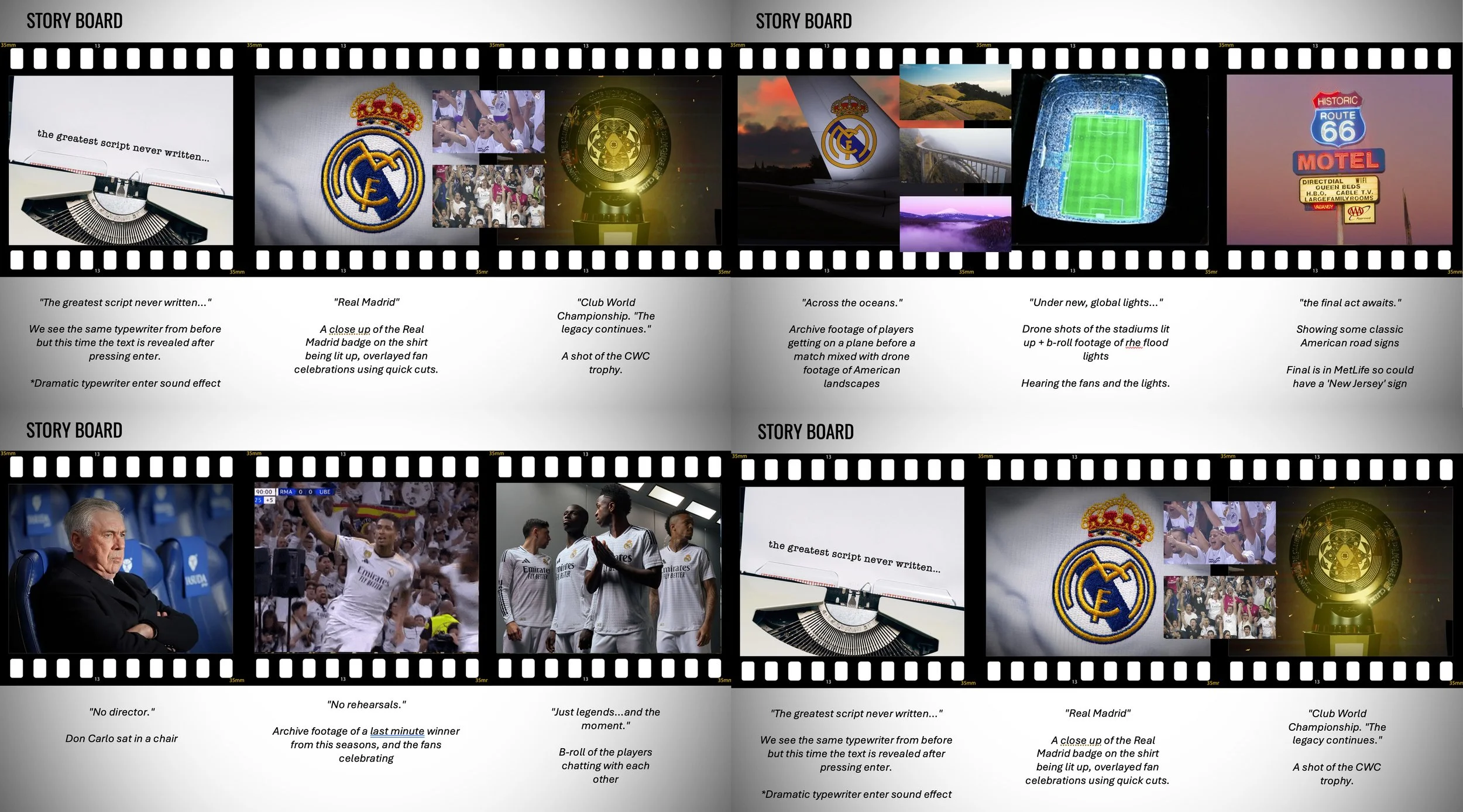 I worked alongside Engage Digital to help shape the creative art direction for Real Madrid’s Club World Cup campaign. I pitched three initial concepts to the client, and once a direction was chosen, I built out the idea and developed how it would live across social media in multiple formats. The final result is something I’m really proud of (I even have a clip of Jude Bellingham reading my script 😁 )